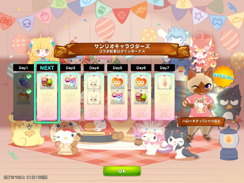 このイベントでは、新しい仲間「ハローキティ」や「ハローキティ帽」などの豪華な報酬を獲得できます。